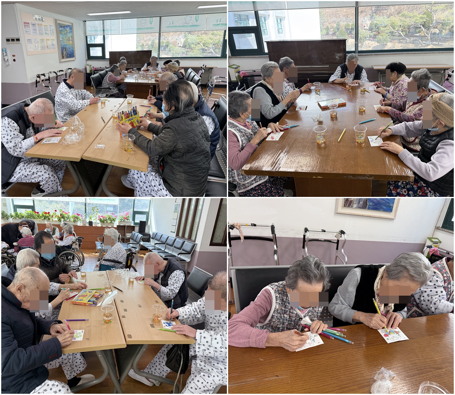 준비된 재료를 활용하여 환자분들께서 직접 색칠하고 꾸미는 활동을 하며 손을 사용하고 집중하는 시간을 가졌습니다.