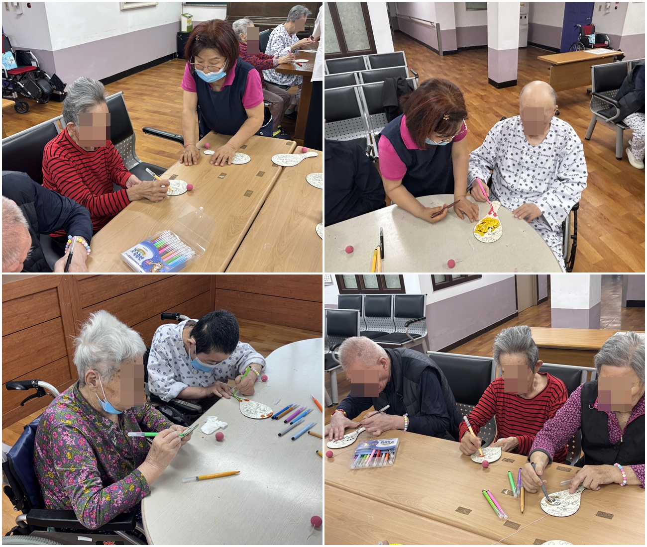 오늘은 어르신들을 모시고 민화라켓볼 만들기 프로그램을 진행했습니다.