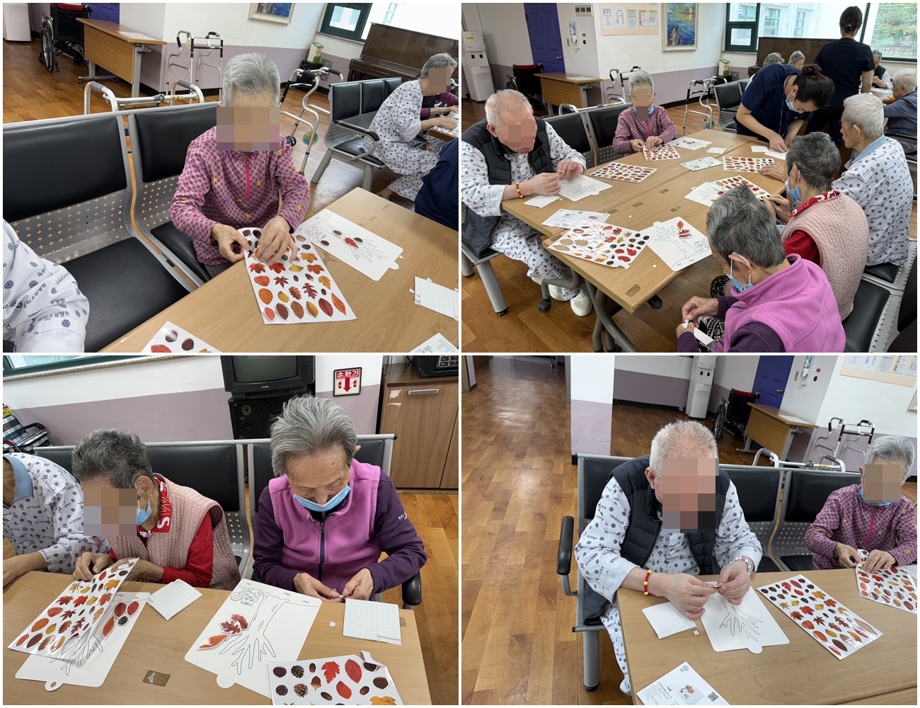 오늘은 어르신들을 모시고 가을 풍경 액자 만들기 프로그램을 진행했습니다.