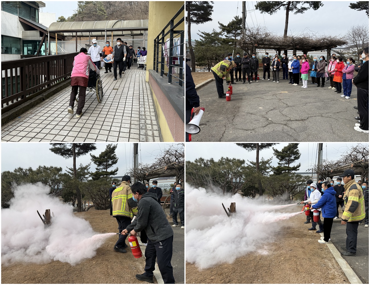 금일 본원에서는 소방안전센터와 함께 화재 발생 상황을 가정한 대피 및 소화기 사용 훈련을 실시하였습니다.