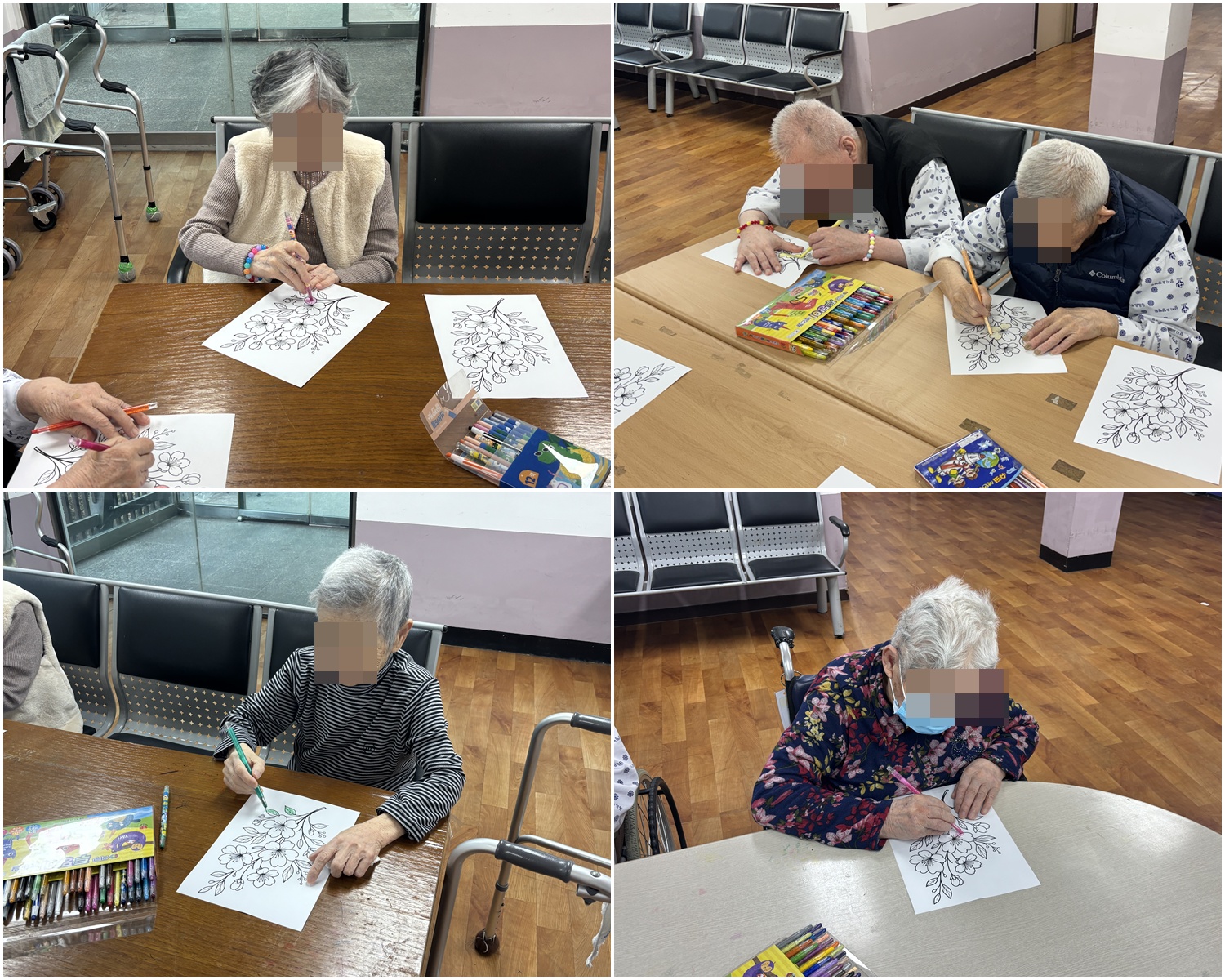 금일 환자분들의 정서 안정과 인지 자극을 위해 벚꽃 색칠하기 프로그램을 진행하였습니다.