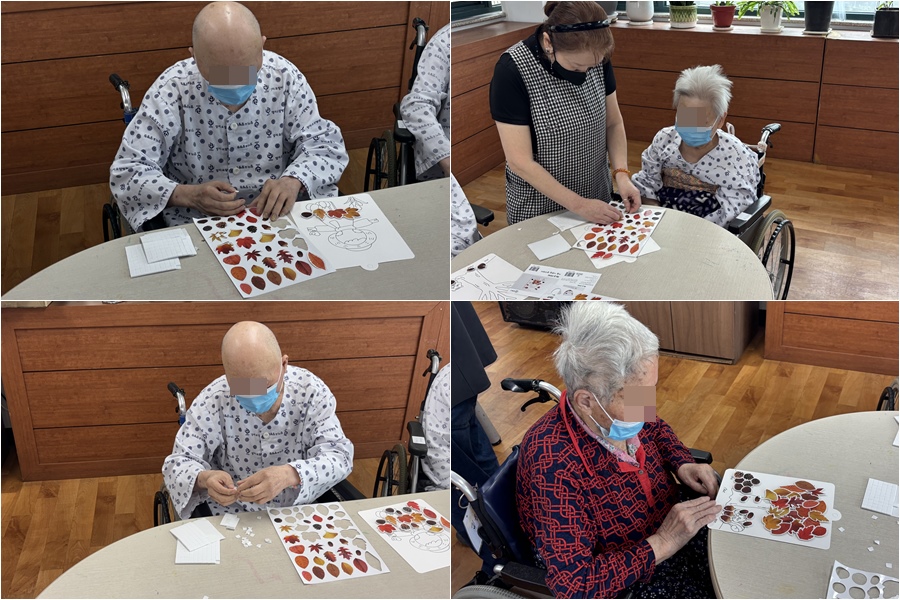 금일 어르신들과 가을 풍경 액자 만들기 프로그램를 진행하였습니다.