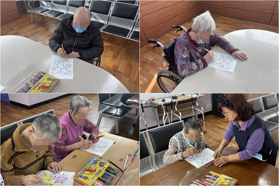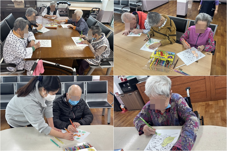 금일 요양원에서는 ‘작은 숲 속의 참새 색칠하기’ 프로그램을 진행했습니다. 어르신들께서 색연필을 사용해 숲의 색과 참새의 모습을 각각 개성 있게 표현하시며 즐겁게 참여하셨습니다.