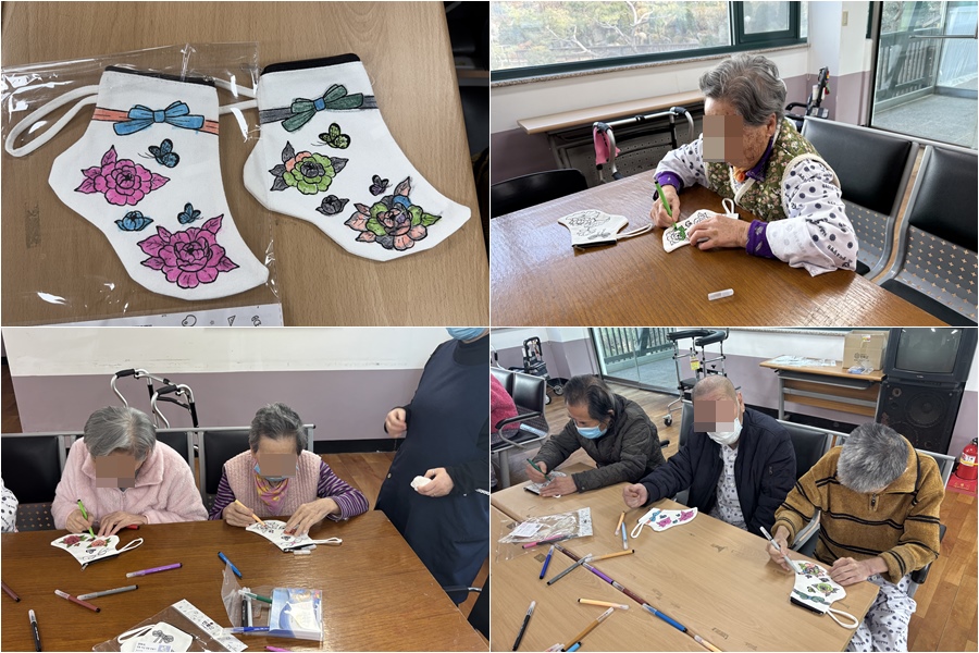 금일 요양원에서는 전통 버선발 꾸미기 프로그램을 진행하였습니다.