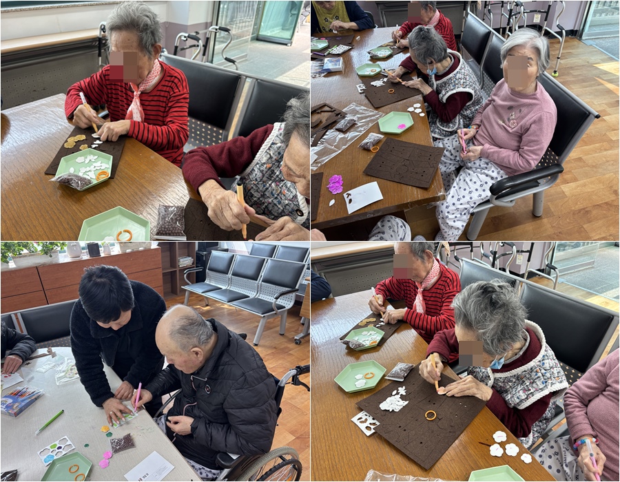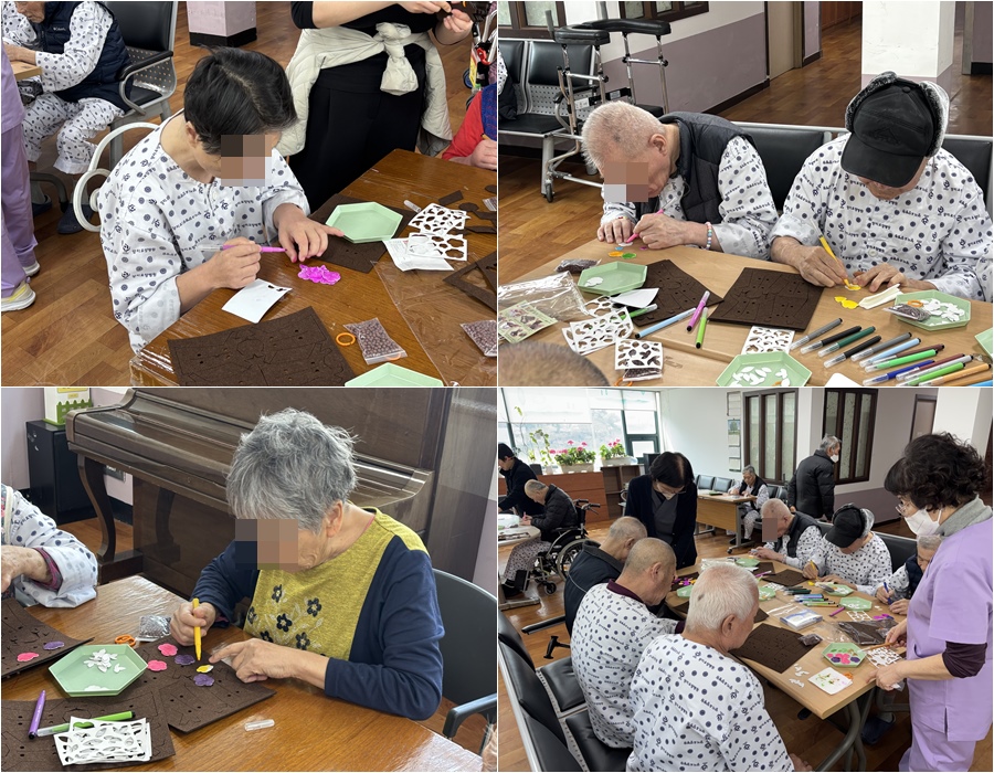 어르신들께서는 나뭇잎과 꽃 도안을 알록달록하게 색칠하시며 봄의 화사한 분위기를 느끼셨습니다.