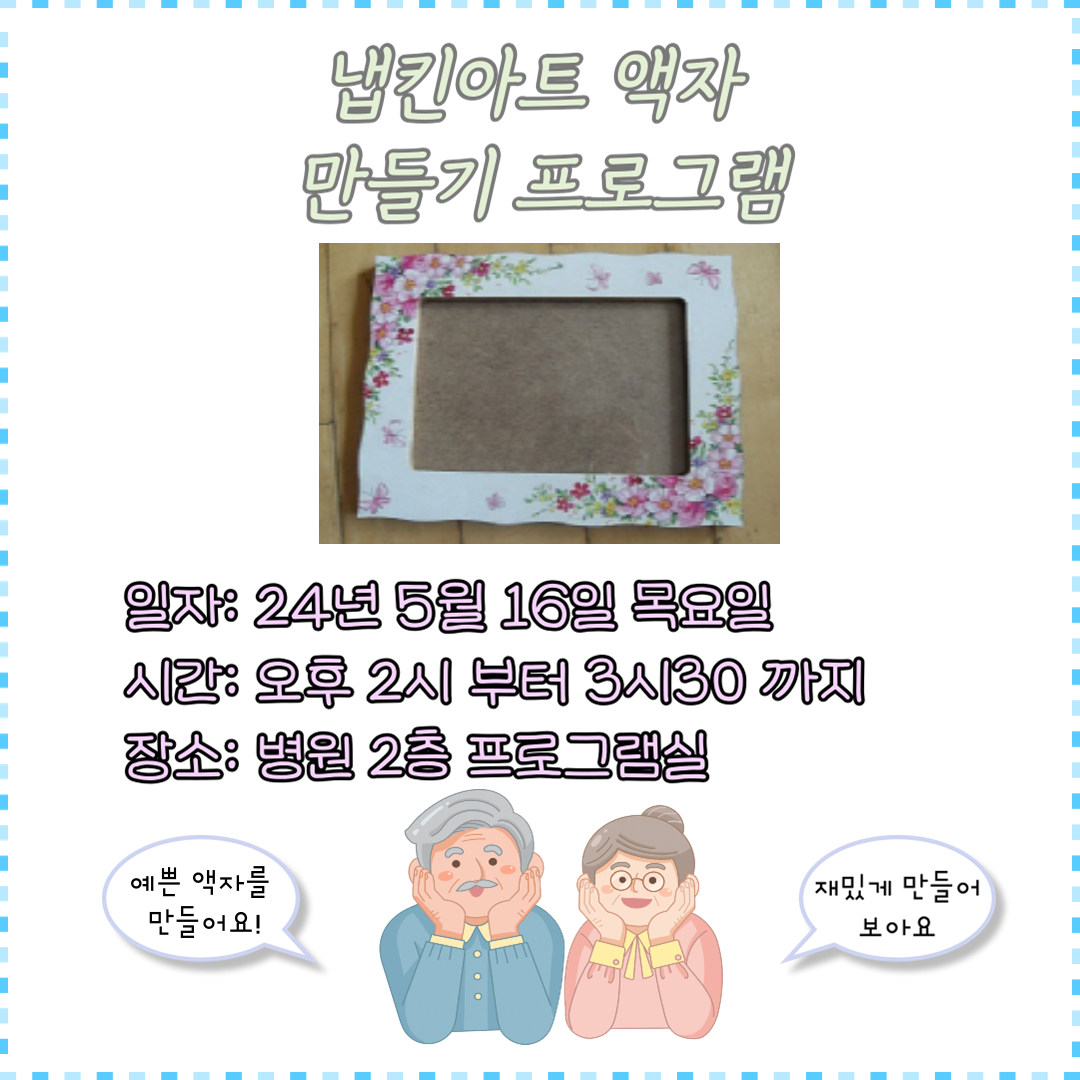 냅킨아트 액자 만들기 프로그램 실시 안내(24.05.16)