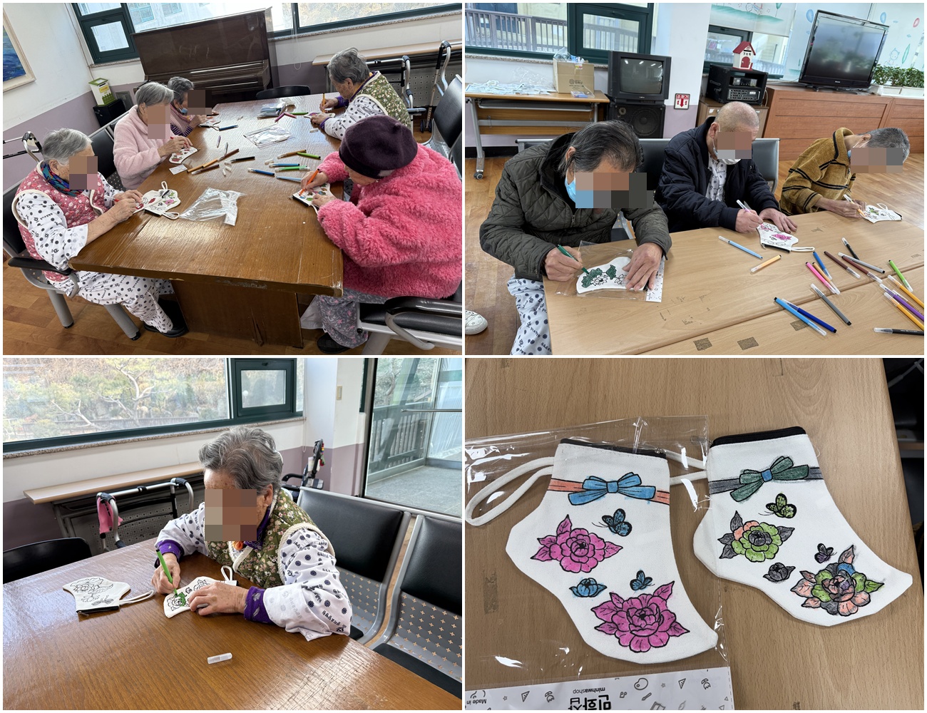 금일 환자분들을 모시고 전통 버선 양말 꾸미기 프로그램을 진행하였습니다.