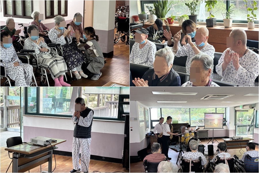 어르신들에게 익숙한 가요를 들려주서서 어르신들이 집중해서 연주를 감상하셨으며