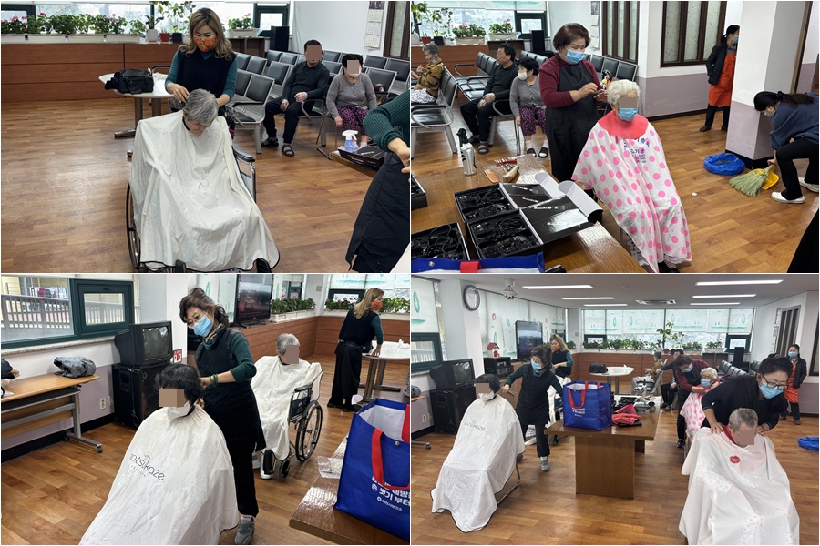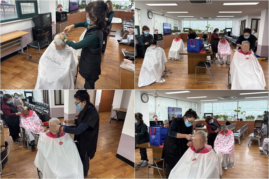 정성스럽게 머리를 다듬어 주신 덕분에 어르신들께서는 한층 더 산뜻해진 모습으로 밝은 미소를 보이셨으며