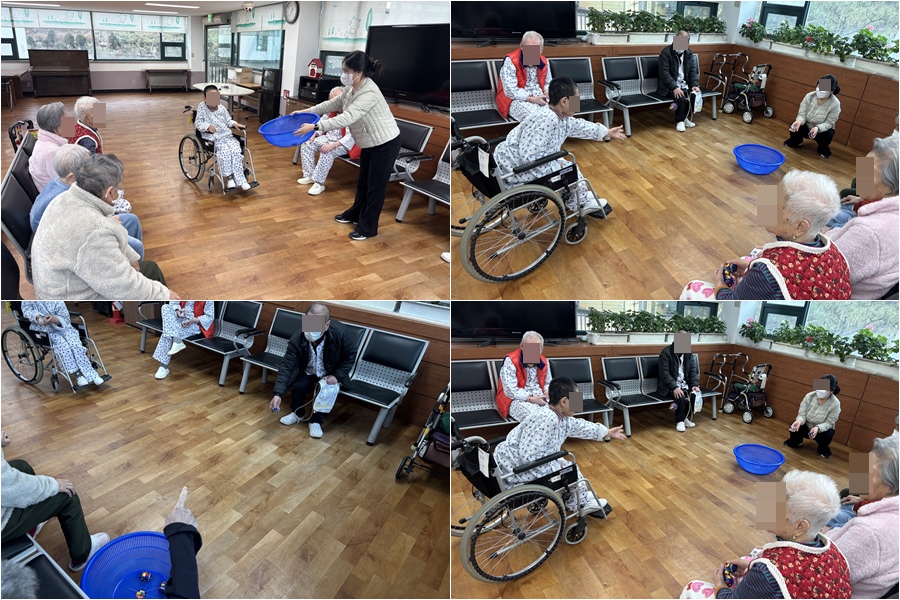 어르신들께서는 차례를 기다리며 몇 차례 콩주머니를 던지시며 가볍게 신체 활동을 하셨고,
