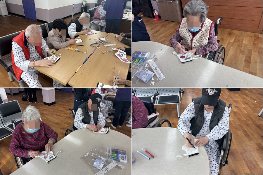 어르신들께서 각자의 취향에 맞게 색연필과 사인펜 등 다양한 채색 도구를 활용해
