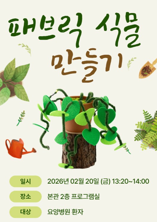 26.02.20 (금) 패브릭 식물 만들기 프로그램 진행 예정